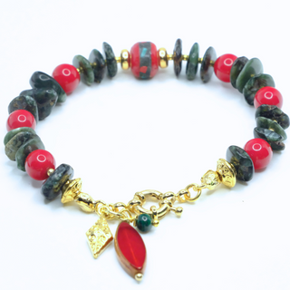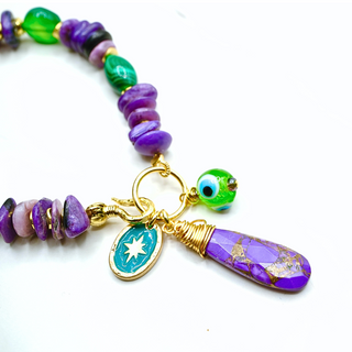 Charoite Bracelet with Malachite, Green Jade & Copper Turquoise