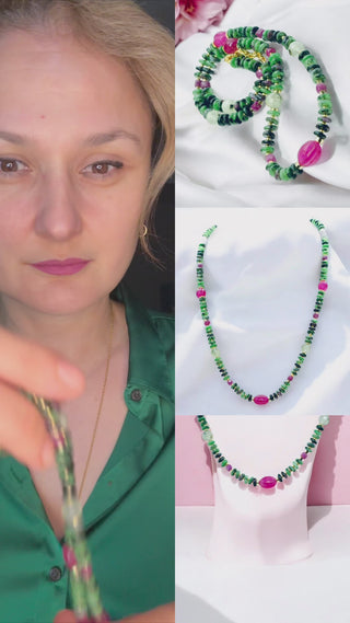 Ruby Jade, Prehnite and Ruby Zoisite Boho Necklace
