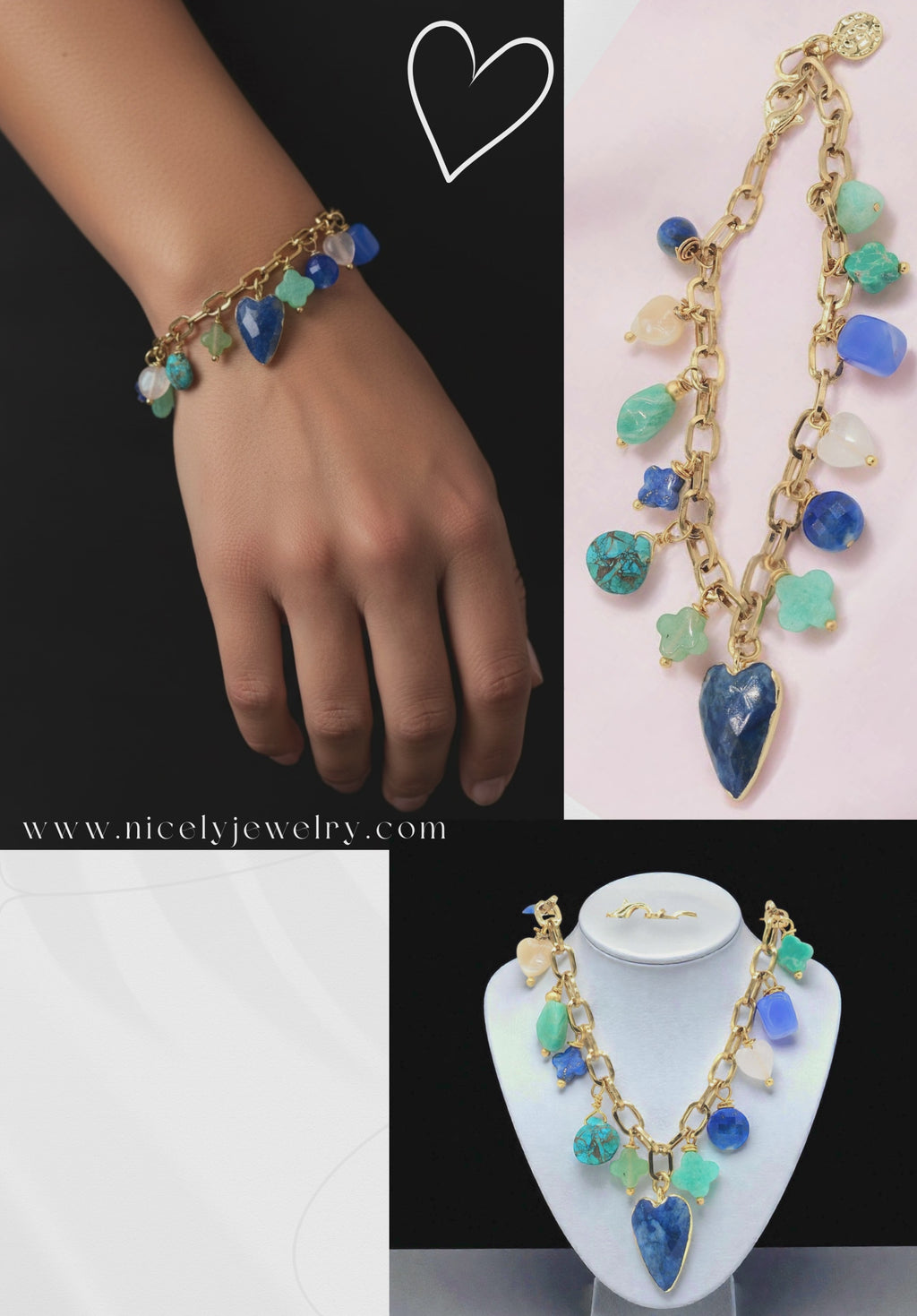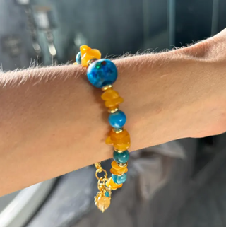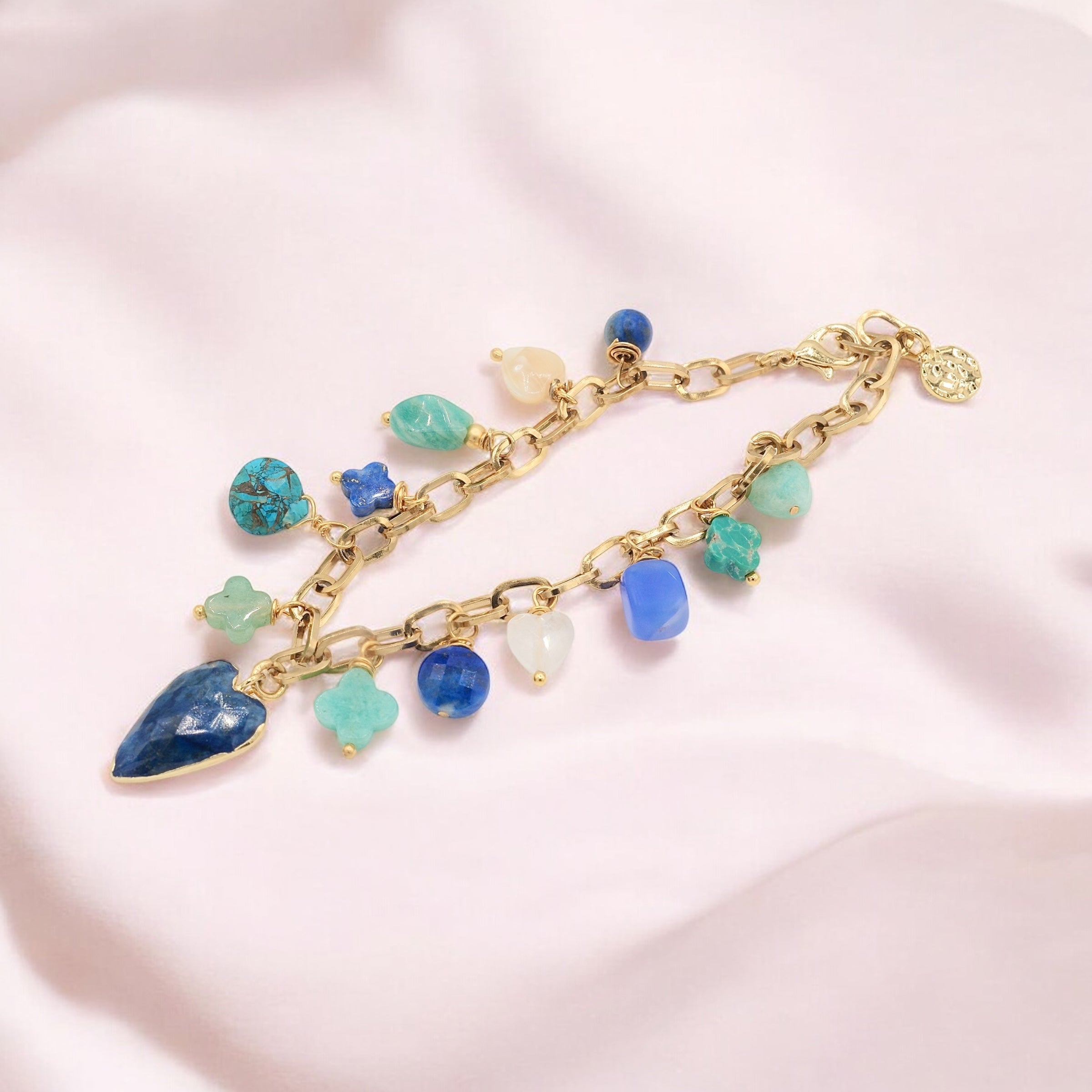 A refined, intentional piece designed to celebrate love with depth, meaning, and quiet luxury. This one-of-a-kind charm bracelet is handcrafted using carefully selected natural gemstones and finished with 18K gold-plated details for a warm, elevated glow.