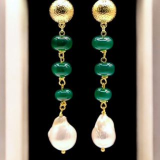 Green Onyx & Baroque Pearl Dangle & Drop Earrings