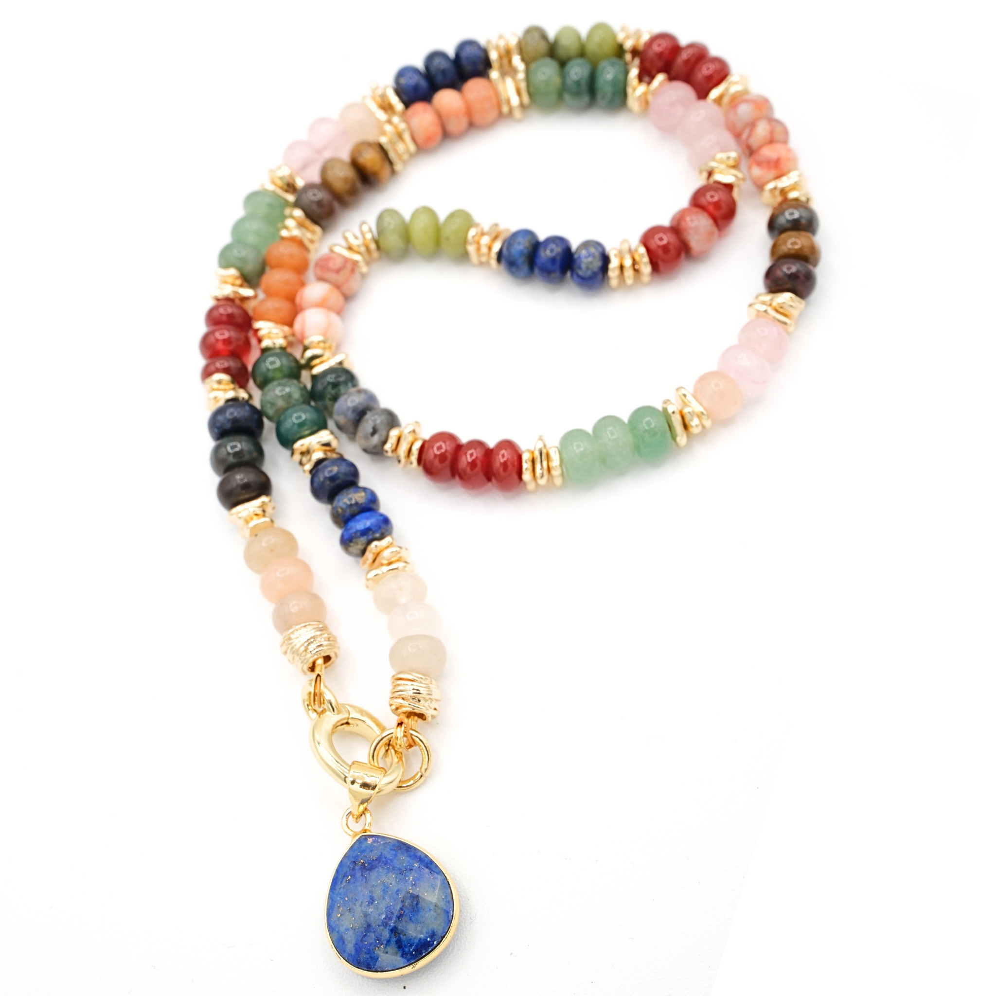 Multi-Color Oval Clasp Necklace with Lapis Lazuli Pendant